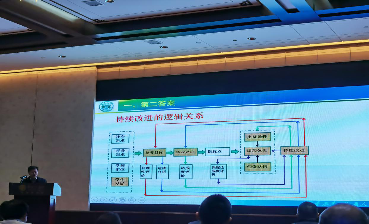 雷竞技官网曾祥君教授代表学校致欢迎辞。原湘潭大学党委书记、原湖南大学副校长章兢教授作了“基于反馈控制理论的教学持续改进”的主旨报告。他结合闭环控制系统,详细讲述了以学生培养目标为期望值,毕业要求作为主控制器、教学计划和课程大纲作为副控制器,实时根据课程目标、毕业要求、培养目标达成评价反馈,持续改进的闭环过程。