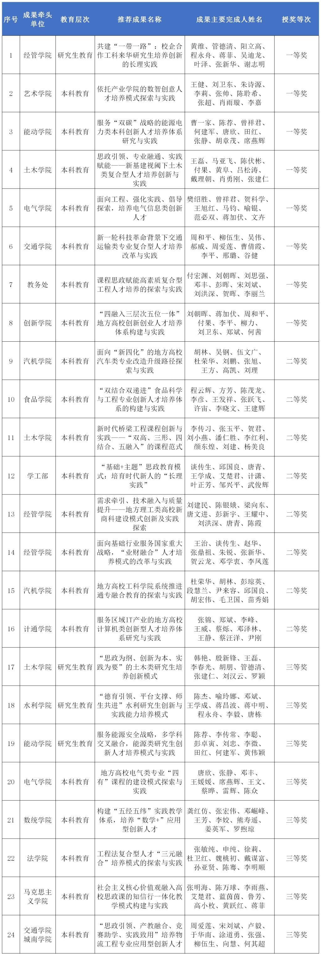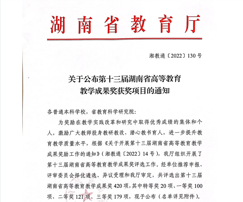 在本届湖南省高等教育教学成果奖评选中,雷竞技官网共获得成果奖24项(含一等奖8项、二等奖8项、三等奖8项)。