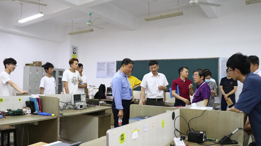 现场考查期间,专家组成员到学院电子设计竞赛和2021届电子信息工程专业毕业设计作品展现场了解情况,考查了学生的专业技能;实地考查了EDA、信号与系统、信号检测与智能处理、电子创新训练中心、电工电子实验中心等13个相关实验室、专门教学场所和实践基地。专家组成员还分别开展了用人单位、校院两级管理人员、任课教师、校友和在校学生代表访谈,调阅了相关试题试卷、毕业设计、课程设计和实验实习报告等教学档案。