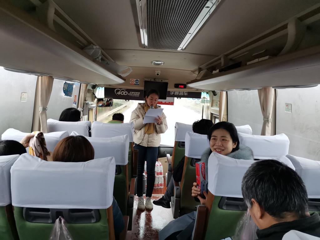 党史知识抢答赛在出发途中进行,采取全员参与,答对有奖,答错唱红歌的方式进行,气氛紧张活泼,为本次体验式教育活动开启了热烈的序幕。