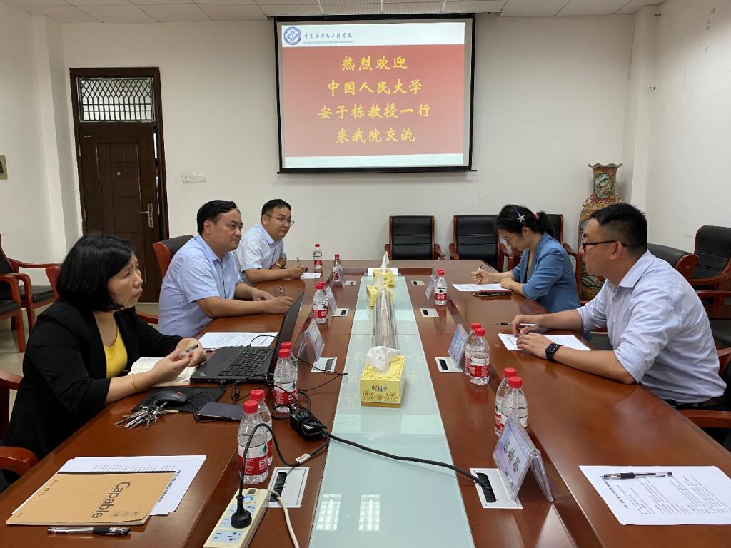 9月15日,中国人民大学应用经济学院院长助理安子栋一行来我院调研交流