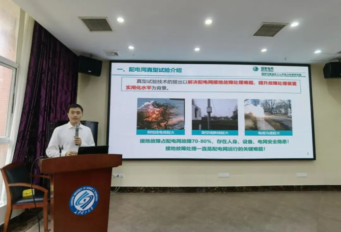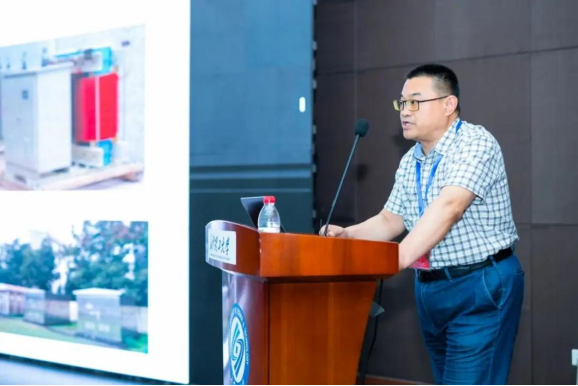 3.长沙理工大学副校长曾祥君作了“中性点经电压源接地方式与接地故障相主动降压消弧升压隔离技术及装备”报告。配电网长期存在由接地故障引发的人身触电、电气火灾、过电压、负荷停电的运行痛点。针对“四大痛点”,曾祥君提出了“调控中性点电压-等效调控中性点对地阻抗-实现各种接地方式无缝切换”的创新思路,形成中性点电压源接地新方式,并研制了中性点电压源消弧成套设备,该产品已完成150余套近2年运行中试。