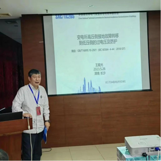 全国建筑电气装置标准化技术委员会王殿光高工作了“变电所高压侧接地故障转移到低压侧的应力电压及防护”的报告。