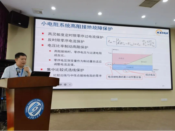 山东科汇电力自动化股份有限公司总监王超作了“有源配电网接地故障保护与供电恢复”的报告。