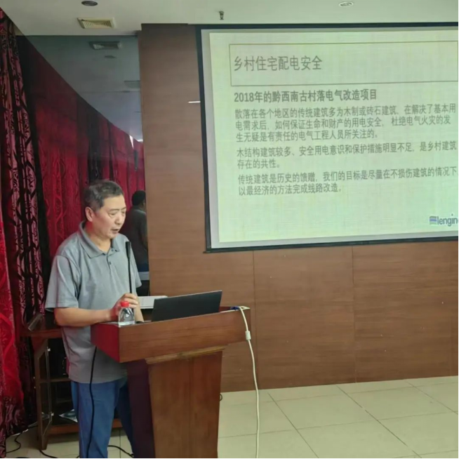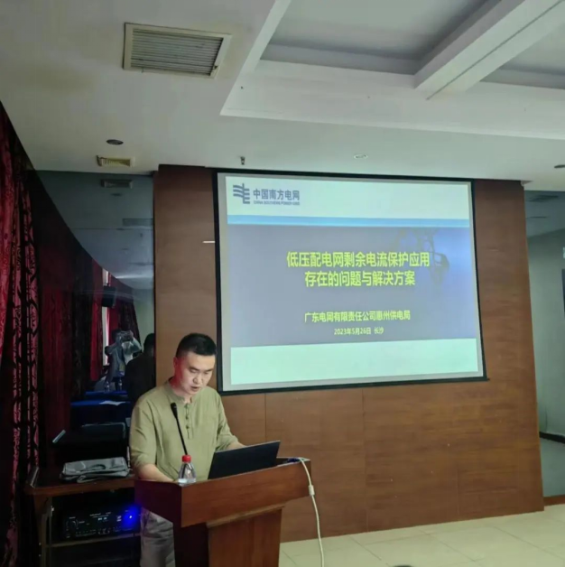 广东电网有限责任公司惠州供电局专家工作室主任林志超作了“低压配电网剩余电流保护应用存在的问题与解决方案”的报告。