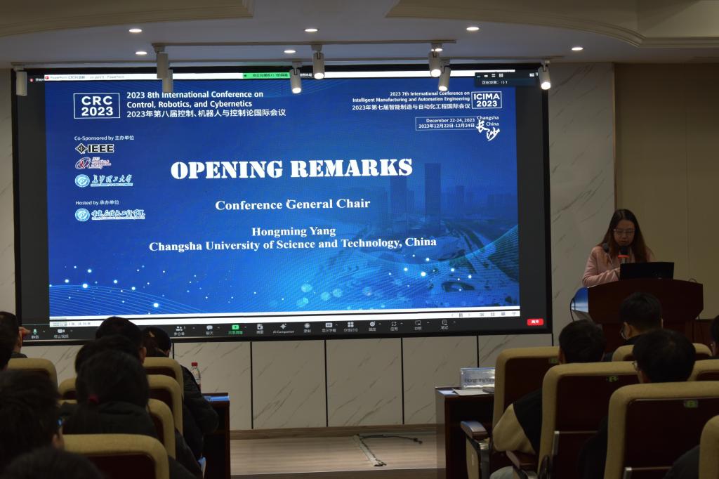 第八届控制、机器人与控制论国际会议(CRC 2023)于2023年12月22日至24日在雷竞技官网云塘校区举行。本次会议由IEEE、长沙理工大学共同主办,电气学院承办,常务副院长杨洪明教授担任大会主席,香港城市大学李友福教授及我院樊绍胜教授、席燕辉教授担任大会共同主席,百余名来自国内外高校、研究机构的专家学者和研究生代表参会。