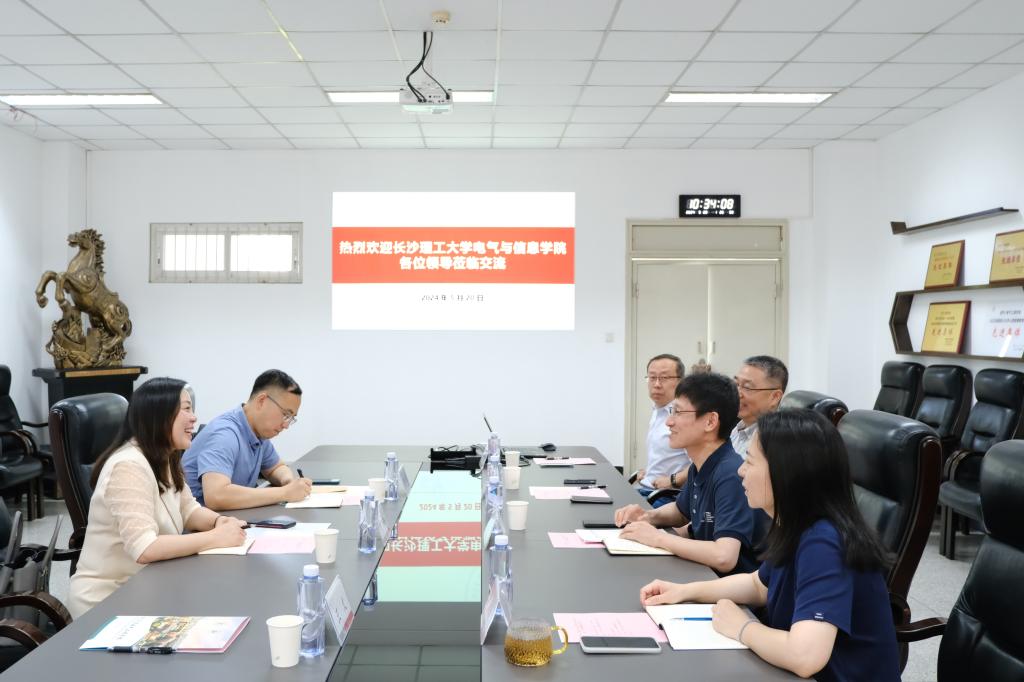 丁丹一行与四川大学电气工程学院领导班子开展座谈交流,四川大学电气工程学院院长肖先勇、党委书记赵昱辉等参加座谈。交流会上,肖先勇院长从党建引领、师资情况、学科专业、科研团队等方面详细介绍了四川大学电气工程学院的基本情况,丁丹书记简要介绍了长沙理工大学电气与信息工程学院的学科建设情况。随后,与会双方就党建工作、人才引进、成果培育、科研管理等方面进行了深入交流。