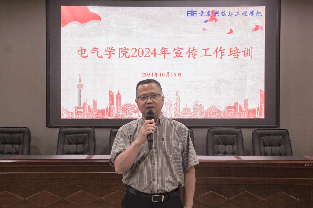 10月15日下午,学院2024年宣传工作培训在工科一号楼B503报告厅举行。院党委副书记周巍出席并总结讲话,学院组织员吴文斌应邀主讲,学院机关全体工作人员及分团委、学生会、研究生会、学生党建、年级分会学生干部及各年级团支部组织宣传委员共210余人参加。会议由分团委书记田孟萍主持。