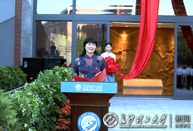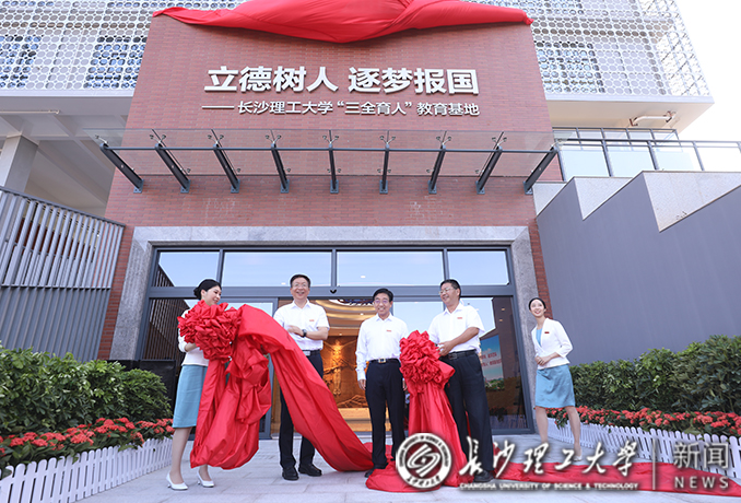 “长沙理工大学‘三全育人’教育基地正式开放!”10月1日上午,在云塘校区大会堂南侧,校党委书记付宏渊、校长曹一家和中国工程院院士郑健龙共同揭开火红的幕布,“立德树人 逐梦报国”八个大字映入眼帘。全体校领导,离退休老同志代表,机关处室负责人和各学院党政负责人以及师生代表420余人见证雷竞技官网“三全育人”教育基地揭幕。揭幕仪式由副校长蒋璟萍主持。