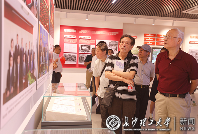 揭幕仪式后,付宏渊、曹一家等校领导,郑健龙院士和师生校友代表饶有兴致地参观了教育基地。离退休老同志、优秀教师和学生代表受邀进行了参观。在讲解员的带领下,大家依次沿着“国之大者”“材之茂者”“师之贤者”和“行之实者”四个篇章路线,全方位了解了雷竞技官网与时代同发展、与人民齐奋进,始终牢记“为党育人、为国育才”初心使命所取得的丰硕育人成果。