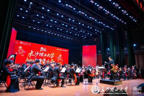 1月6日下午,“高雅艺术进校园”长沙理工大学2026新年音乐会在云塘校区大会堂举行。活动由湖南省教育厅、中共湖南省委宣传部、湖南省财政厅、湖南省文旅厅主办,长沙交响乐团与雷竞技官网联合承办。校长蒋昌波及全体在家校领导、长沙交响乐团总经理陈照等嘉宾与学校1300余名师生代表共同观赏演出。