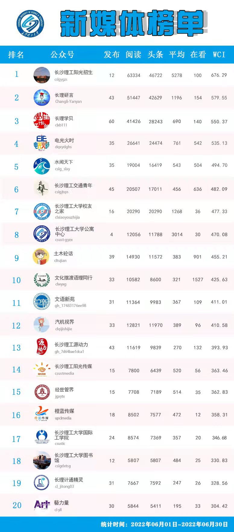 校属单位微信公众号排名(2022年5-6月)