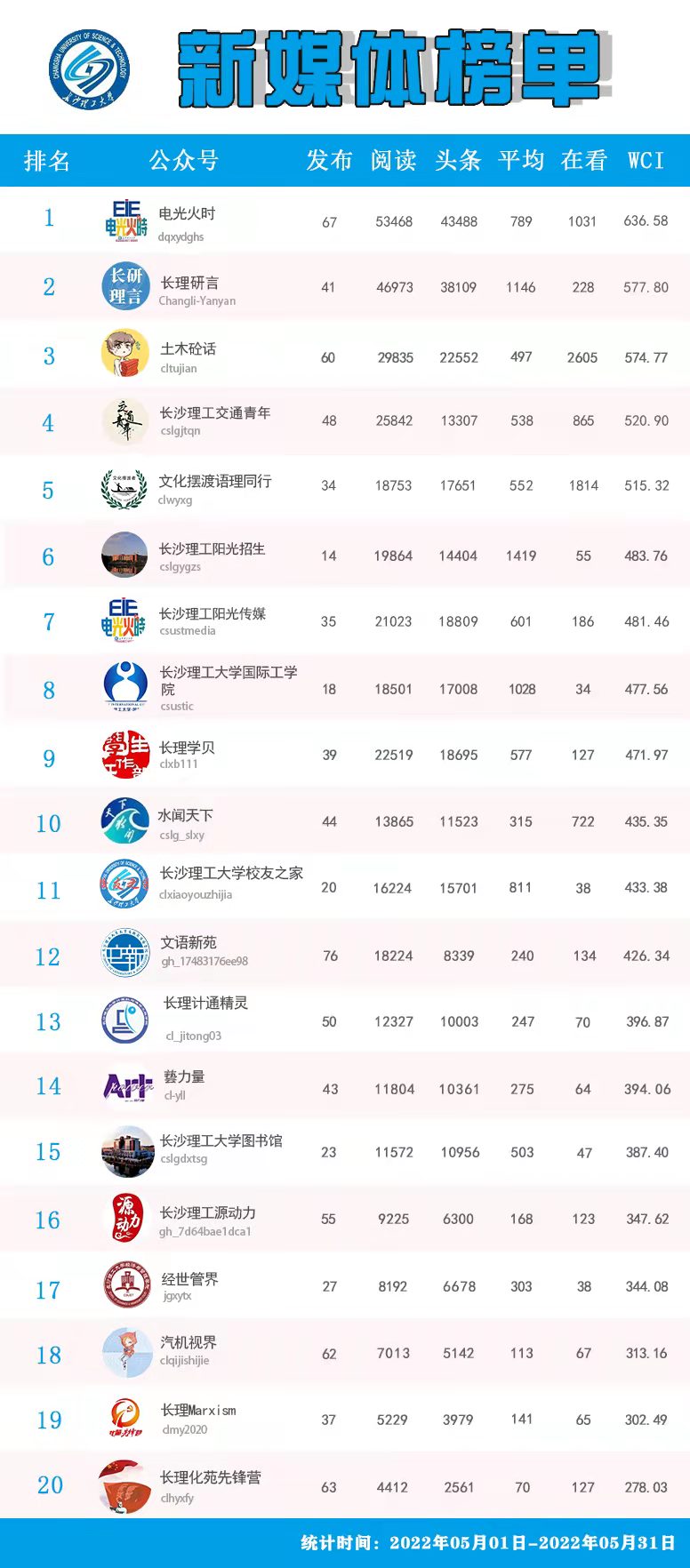 校属单位微信公众号排名(2022年5月)