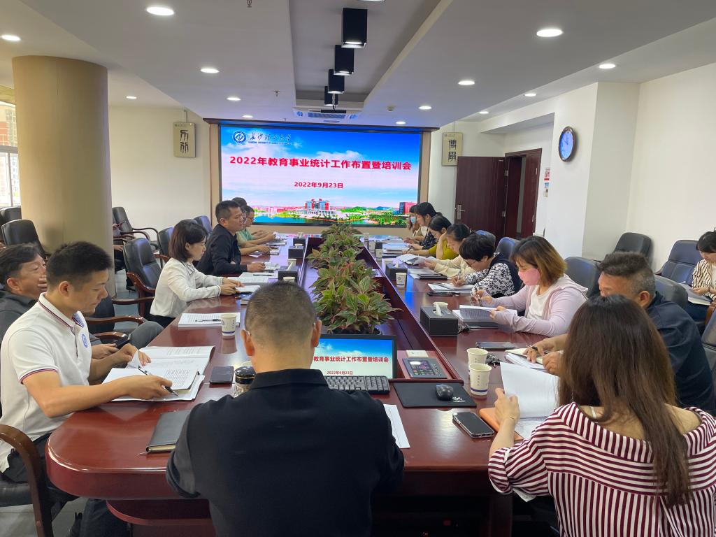 20229月23上午10:00,学校2022年教育事业统计布置培训会在一办公楼六会议室举行。党政办、人事处、实验与资产处等25个单位统计人参加会议,会议由学校教育事业统计工作领导小组办公室主任庄创奇主持。