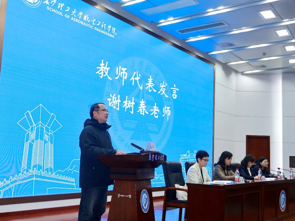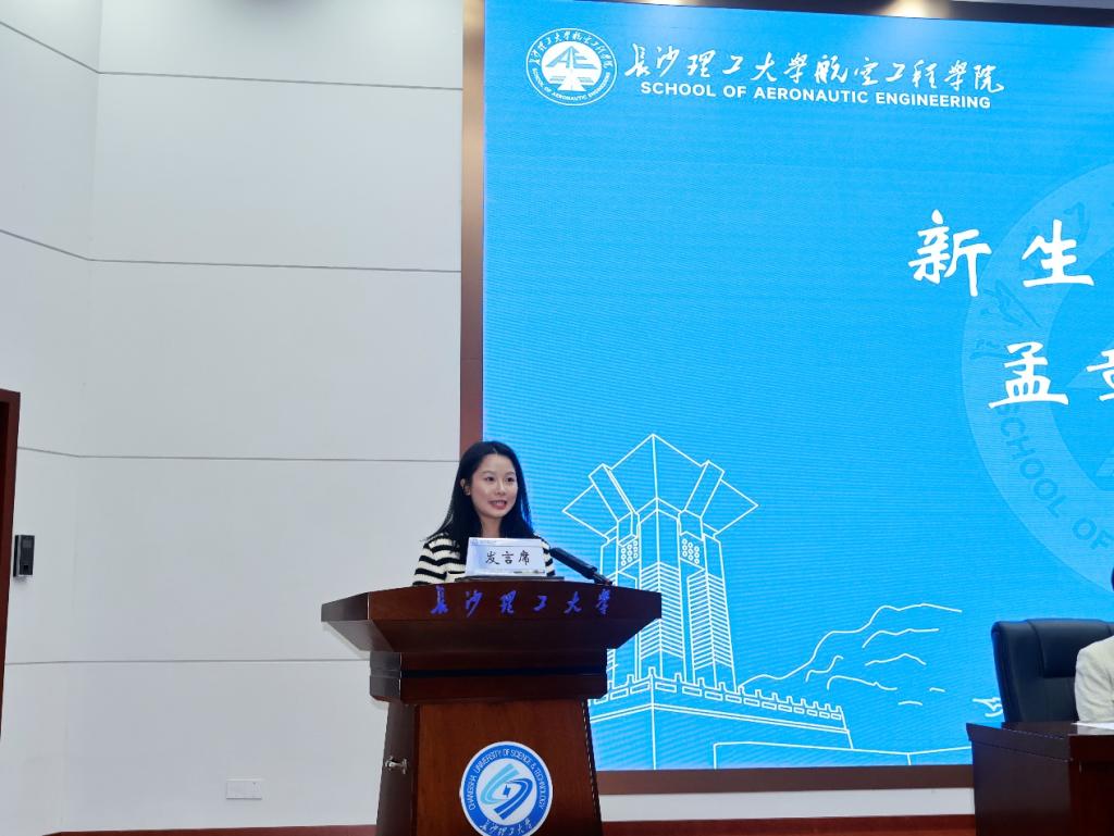 教师代表谢树春叮嘱同学们主动与师长交流沟通,深耕学业,在大学这片沃土中汲取养分,夯实学识,锤炼真本领;优秀校友雷若尘结合自身从校园到职场的成长经历,激励学弟学妹永葆探索热情、勇敢面对挫折挑战;新生代表孟章婧满怀热忱的发言道出了全体新生的激动与憧憬,她表示,将与全体“航空一期”的同学们一起,不负韶华,努力成为学院历史中最闪亮的起点。
