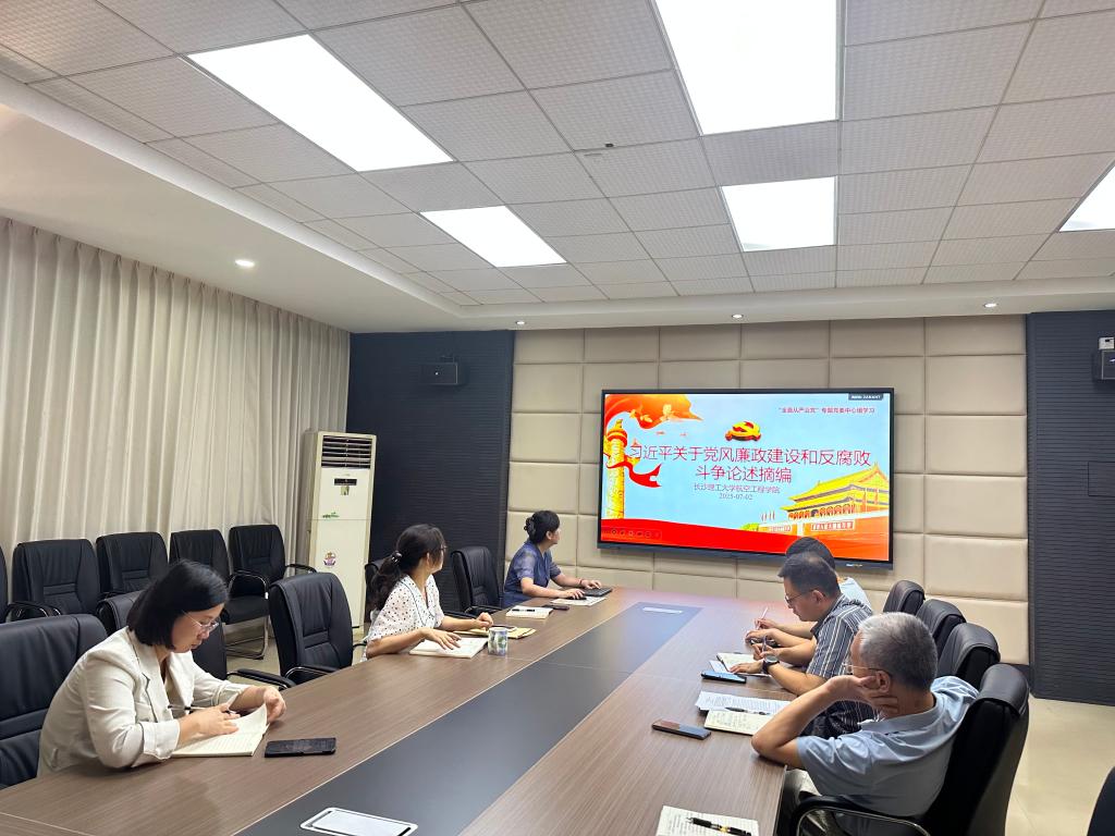 2025年7月3日上午10时,航空工程学院党委理论学习中心组在文科楼C501会议室召开“党风廉政建设”专题学习会。会议由学院党委书记文丽丽主持,全体中心组成员参加。