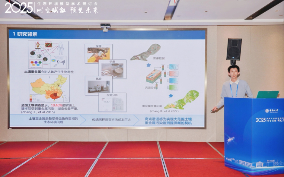 涂宇龙老师在“资源环境立体感知与智慧治理”专题中,分享了《融合土壤环境要素的重金属高光谱遥感反演模型研究》,展示了高光谱遥感在环境监测中的创新应用。