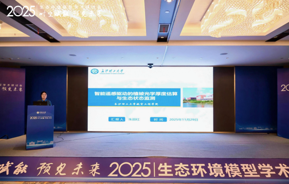 2025年11月28日至30日,以“时空赋能,预见未来”为主题的“2025年生态环境模型学术研讨会”在湖南长沙隆重举行。本次研讨会汇聚了国内生态环境模型领域的众多专家学者,共同探讨遥感、GIS、人工智能等前沿技术与生态环境研究的深度融合。长沙理工大学航空工程学院教师团队积极参与此次学术盛会,并在多个专题会场分享了最新研究成果,与同行进行了深入交流。
