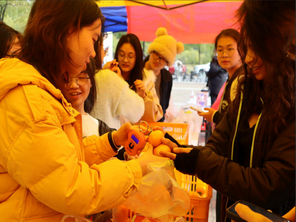 11月24日至11月29日,长沙理工大学云塘校区汀香园前坪热闹非凡,“青山育金果,橘香暖人心”第六届助农帮扶活动正热烈开展。即便凉意袭人,航空工程学院摊位前仍师生围聚,挑选砂糖橘的热情丝毫未减,“这些砂糖橘多少钱一斤?”,“这砂糖橘甜不甜?”的问询声此起彼伏,挑选、称重、扫码的身影穿梭不断,现场叫卖声与笑语裹着橘香漫遍校园。