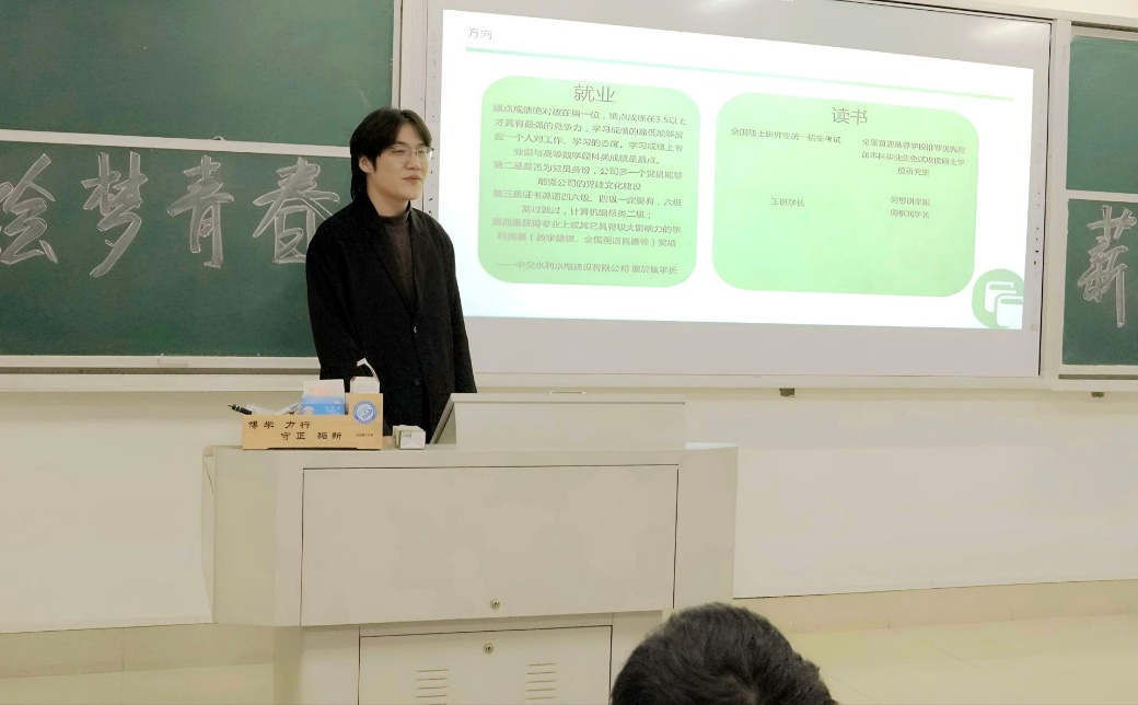 22级、23级的优秀学长学姐们作为“引路人”登台分享,内容覆盖学习备考技巧、学生工作实践、科研竞赛突破、考研保研规划等多个维度。他们结合自身亲身经历,用生动案例和实用干货,为新生们答疑解惑,不仅让大家对测绘遥感专业的学习内容、行业前景有了更清晰的认知,更传递了积极探索、勇于拼搏的专业精神。新生们认真聆听、积极互动,现场不时响起阵阵掌声。