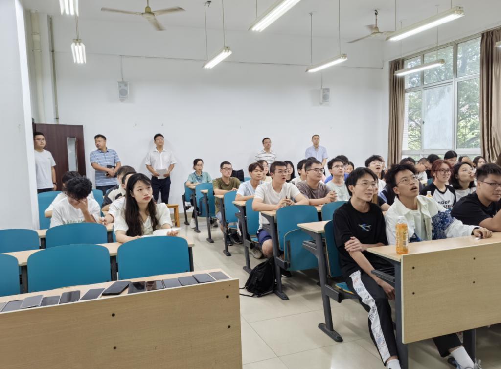 2023年9月4日上午,化学学院领导班子成员宋刘斌、张跃飞、任艮丰、陈启杰、喻林萍、卿志和,以及教务管理人员、辅导员在工三教学楼对新学期开学第一天学院的教学工作进行了检查,重点检查了任课老师到课情况和学生出勤情况及学生的学习状况。