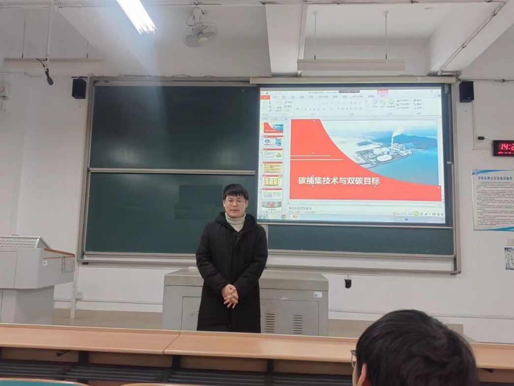 2023年12月15日下午,化学化工学院郑文超博士在云工三B218开展了题为“碳捕集技术与“双碳目标”的通识教育学术讲座报告,学院2023级的部分本科生及其他年级同学共八十余人聆听了讲座。