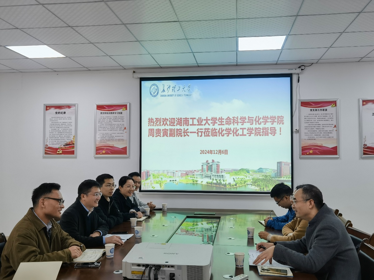 2024年12月6日上午,湖南工业大学生命科学与化学学院副院长周贵寅一行莅临长沙理工大学化学化工学院进行调研和交流。此次访问旨在加强两院之间的合作,探讨产学研结合、就业指导以及人才培养的新路径。交流会议由化学化工学院副院长陈启杰主持,应化系主任童海霞、化工系主任戴益民、化学系主任李俊彬、化学系副主任罗文坤等教师代表参加了此次交流讨论会议。