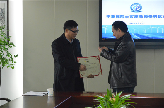 黄立宏副校长为李亚栋院士颁发了客座教授聘书并佩戴校徽,李院士发言说,很高兴成为长沙理工大学的一员,对学校的盛情相邀表示感谢,表示受聘后一定履行客座教授的职责,尽自己所能,为长沙理工大学化学学院的发展尽心尽力,尤其在年轻教师培养、以及学院学科发展方面做些工作。