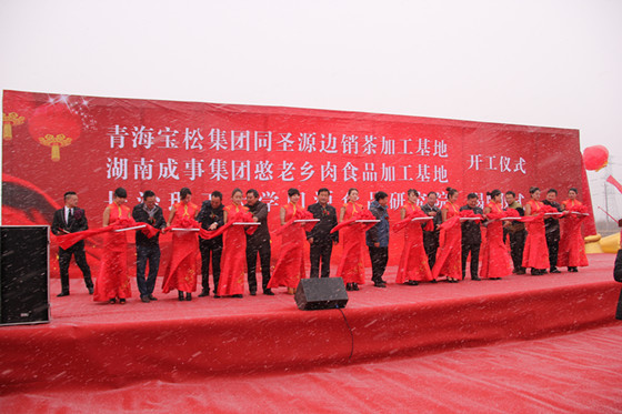 10月28日上午,长沙理工大学食品研究所揭牌仪式与同青海宝松集团同圣源边销茶和湖南成事集团憨老乡肉食品加工基地开工仪式在青海省海北州生物产业园隆重举行。青海省海北州门源县县长黄继成,副县长汪璟邦,发展和改革局局长沙登清,雷竞技官网产学研办公室副主任陈炜,化学与生物工程学院院长助理王建辉,出席了此次揭牌仪式。