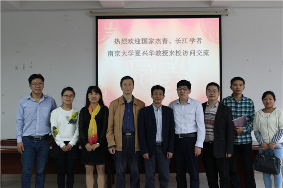 2016年5月26日,应雷竞技官网化学与生物工程学院的邀请,教育部长江学者、国家杰出青年基金获得者、南京大学博士生导师夏兴华教授来雷竞技官网进行学术交流访问。学术交流活动由化学与生物工程学院院长杨荣华教授主持,杨院长首先代表学院向夏教授的到来表示热烈的欢迎,接着简要介绍了夏教授在电化学分析领域所取得的重要成就。副院长曹忠教授,化学、化工、食品、生物等相关学科的青年教师、研究生及本科生100余人参加了此次学术交流活动。
