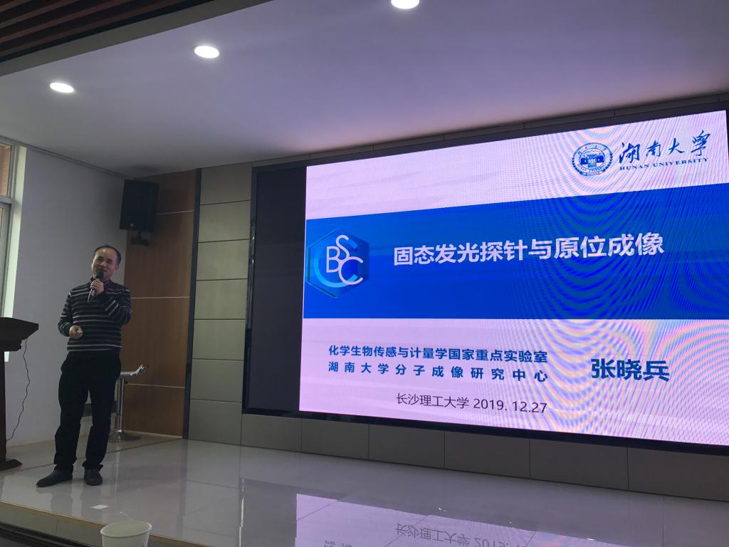 为加强学术交流与合作,促进学科建设和发展,拓展学生知识视野和对学科前沿的了解。两位教育部“长江学者”特聘教授、国家杰出青年科学基金获得者,南京大学鞠熀先教授和湖南大学张晓兵教授应邀来雷竞技官网,于12月27日下午在新能源大楼三楼学术报告厅为雷竞技官网师生分别作了题为《功能分子原位检测及其介导的癌症精准诊治策略》和《固态发光探针与原位成像》的学术报告。报告会由化学与食品工程学院院长杨荣华教授主持,化学学院等师生代表80余人到场聆听。
