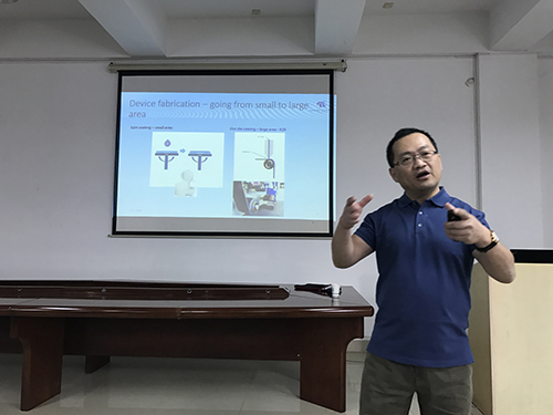 12日下午,在云塘校区工科三号楼A320会议室为化学与食品工程学院的师生作了一场题为“Large Area Flexible Organic Solar Cells: Research and Applications”的学术报告。报告会由化学学院副院长曹忠教授主持,副院长朱志平教授、周艺教授、肖忠良教授及化学、化工、食品等相关学科的老师、研究生及本科生100余人参加了学术报告会。