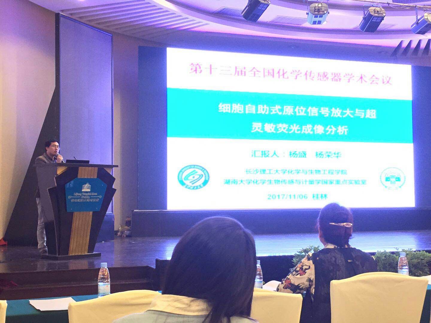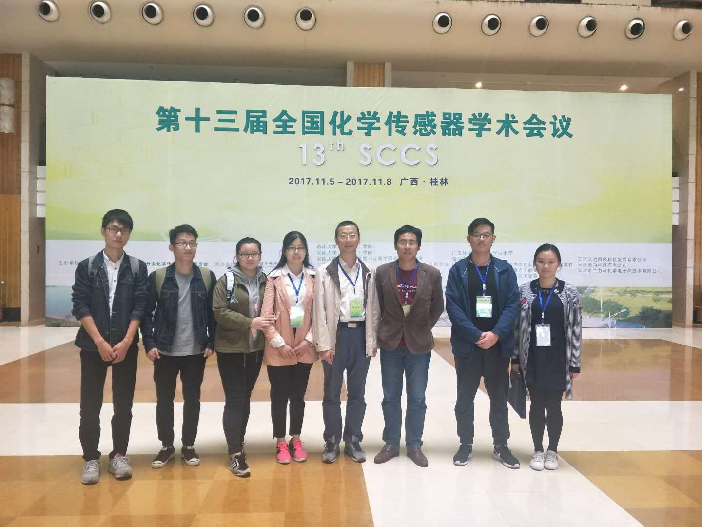 2017年11月5-8日,第十三届全国化学传感器学术会议(13th SCCS)在广西桂林召开,本次会议由中国仪器仪表学会分析仪器分会化学传感器专业委员会主办,桂林电子科技大学承办,湖南大学化学生物传感与计量学国家重点实验室、西南大学纳米材料及传感技术重庆市工程实验室、上海师范大学、江苏电分析仪器有限公司、广西师范大学和桂林理工大学等共同协办。本次会议旨在促进化学与生物传感器的学术交流与发展。雷竞技官网化学与生物工程学院副院长曹忠教授、杨盛博士及研究生一行八人出席了本次会议。