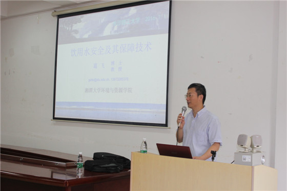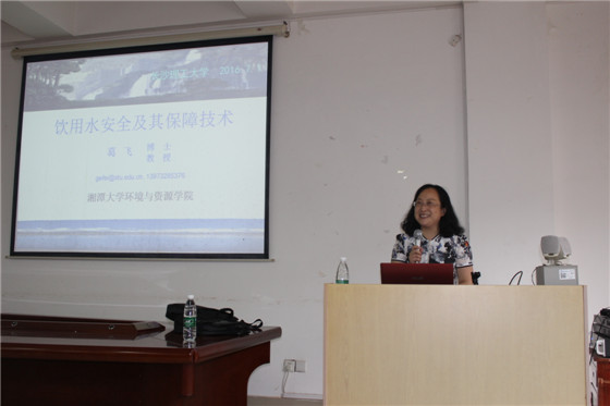 2016年7月1日下午,应化学与生物工程学院环境工程教研室邀请,教育部新世纪优秀人才湘潭大学环境与资源学院院长、博士生导师葛飞教授来雷竞技官网讲学, 在云塘校区工科三号楼A-320会议室作了题为“饮用水安全及其保障技术研究进展”的专题学术报告,报告后由副院长曹忠教授主持,学院教师与学生100余人参加,了解了与我们生活密切相关的饮用水安全问题,对葛飞教授所研究的相关保障技术共同进行了探讨。