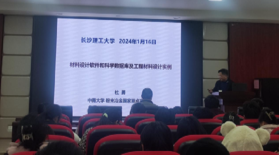 2024年1月16日,应长沙理工大学化学化工学院、电力与交通材料保护湖南省重点实验室的邀请,国家杰青、长江学者、中南大学粉末冶金国家重点实验室副主任、博士生导师杜勇教授来到长沙理工大学进行学术交流访问。