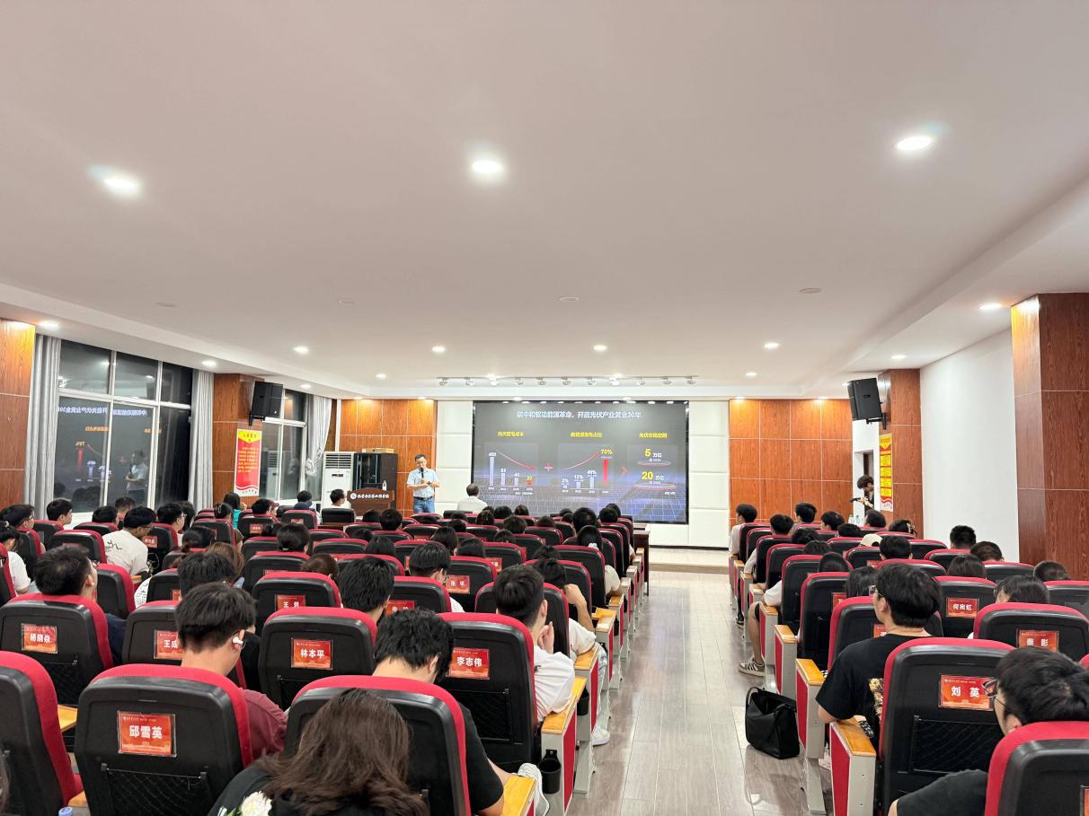 曾智博士以自身经历为引,围绕行业趋势、个人成长与企业价值观,为学子带来一场精彩分享,引发热烈反响。曾智博士指出新能源汽车成为未来趋势、光伏发电前景广阔,结合华为数字能源业务的快速发展,强调材料创新与技术整合是核心竞争力;同时通过将5G基站电源从机房式优化的实例,引导学生敢想敢干。谈及个人成长,曾智博士分享了自己从哈尔滨理工大学材料化学专业起步,到加入华为成为首席高级架构师的经历,强调“正确选择+持续奋斗”的重要性,建议学子明确读研、读博的目标,绘制个人知识地图,提升竞争力,并结合“熵增定律”,鼓励学子主动学习、克服惰性,通过记录与分享巩固知识,快速适应角色转变。现场还通过案例与互动,引导同学们思考,培养系统思维。最后,曾智博士结合新能源行业发展需要寄语同学们既要仰望星空树立高远目标,也要脚踏实地通过具体行动提升自我。
