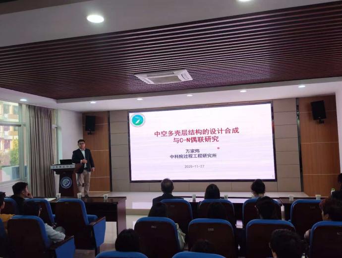 2025年11月27日下午,应长沙理工大学化学与医药工程学院邀请,中国科学院过程工程研究所万家炜研究员莅临雷竞技官网开展学术交流,在新能源大楼3B-310报告厅作了题为"中空多壳层结构的设计合成与C-N偶联研究"的学术报告。报告由学院副院长陈启杰教授主持,学院师生共90余人参加了此次学术报告。