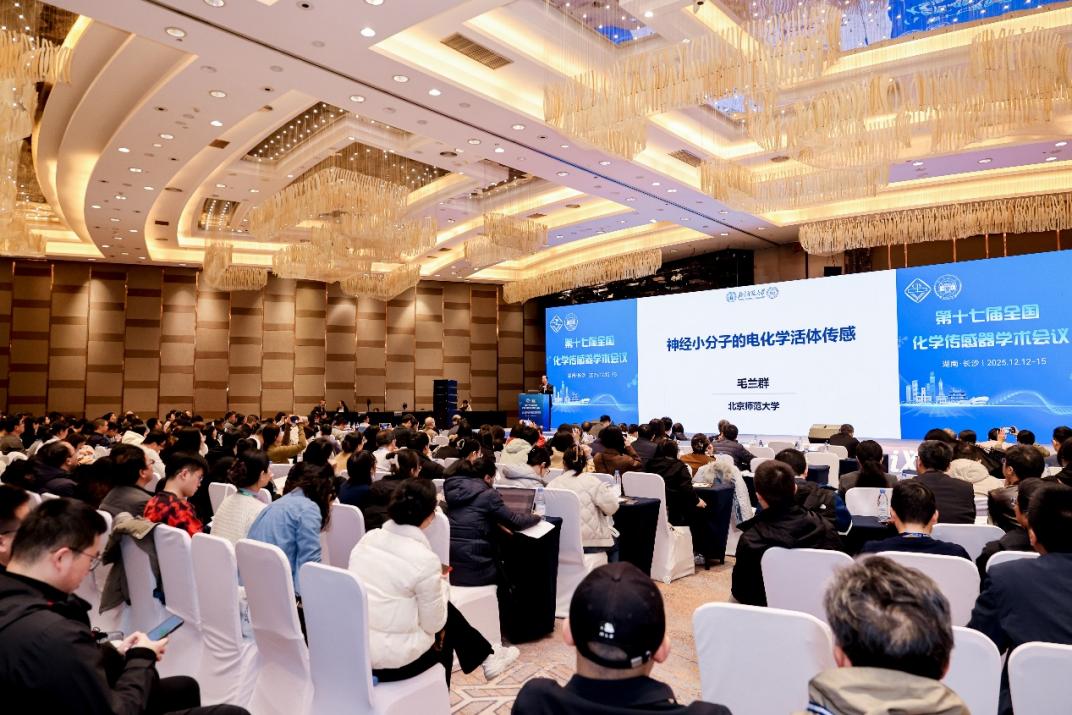 2025年12月12日至15日,第十七届全国化学传感器学术会议(17th SCCS)于湖南长沙成功举办,本次会议由中国仪器仪表学会分析仪器分会化学传感器专业学组(专业委员会)和湖南大学主办,化学生物传感全国重点实验室(湖南大学)、湖南大学化学化工学院承办,上海师范大学、西南大学、江苏江分电分析仪器有限公司和仪器信息网协办。本次大会旨在促进化学与生物传感领域的学术交流与发展。会议期间举办了大会报告和分会报告201场,涵盖了化学生物传感领域的新方法、新技术、新仪器、新成果及实践应用方面的最新进展,吸引了来自全国各地的600多位专家学者和业界同仁参会。长沙理工大学科技处副处长、细胞化学湖南省重点实验室主任卿志和教授,电力与交通材料保护湖南省重点实验室主任曹忠教授,以及化学与医药工程学院教师和研究生10余人参加了本次大会。
