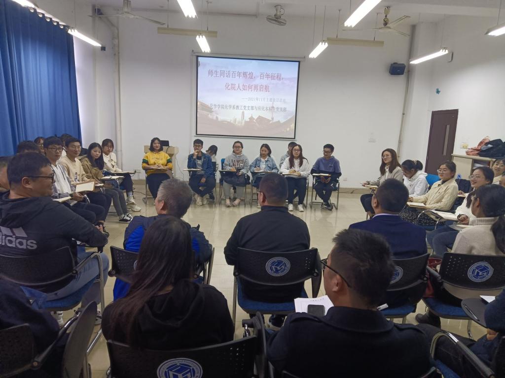 11月18日,长沙理工大学化学化工学院化学支部全体教师党员和应化党支部全体学生党员于工科三号楼B210联合开展“师生同话百年辉煌,百年征程,化院人如何再启航”主题党日活动,活动由化学系党支部书记张雄飞主持。
