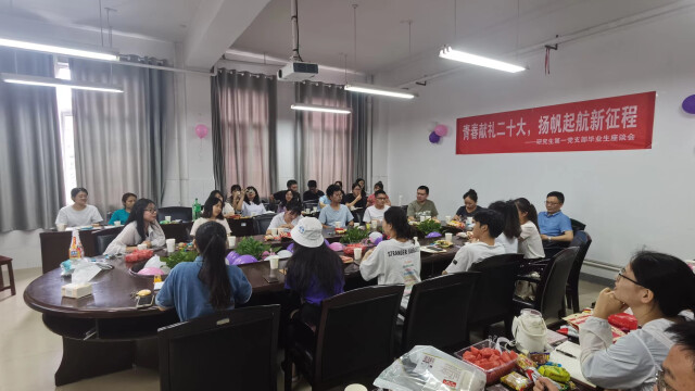 新湖南客户端6月18日讯(通讯员 江洁 瞿果 彭成)6月16日下午,为送别和勉励毕业生党员,长沙理工大学化学化工学院研究生第一党支部开展了“青春献礼党的二十大,扬帆远航新征程”毕业生党员座谈会。学院实验中心主任李江胜、化学系副主任童海霞、支部书记孙佳乐、教师代表及支部全体党员参加了此次座谈会,会议由支部副书记吕贻与支部党员柳辉鸿主持。