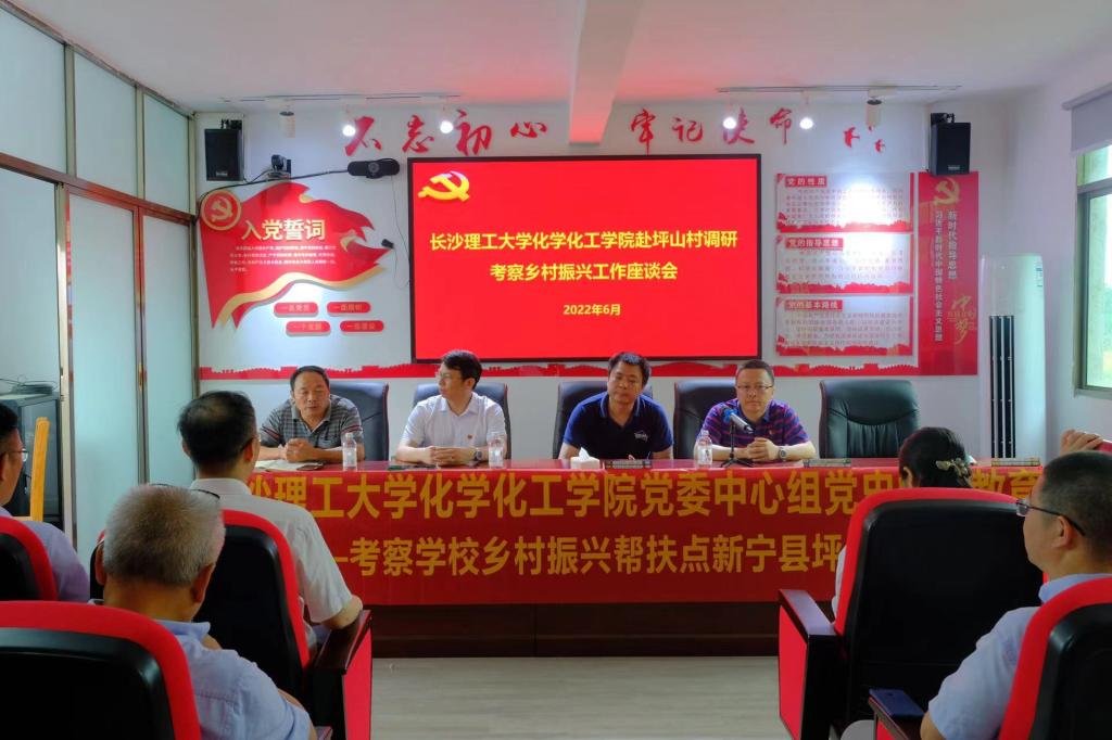 为深入学习习近平新时代中国特色社会主义思想和习近平总书记关于实施乡村振兴战略重要论述精神,创新理论学习形式,切实服务区域经济社会建设,积极助力乡村振兴,2022年6月16日,化学学院党委理论学习中心组赴新宁县坪山村调研乡村振兴工作。学院党委书记宋刘斌带领中心组学习成员深入田间地头,采取“现场学习+调研+慰问+学习研讨”的形式进行了深入的学习交流,把“课堂”设在乡村振兴、美丽乡村建设第一线。学院中心组全体成员,长沙理工大学乡村振兴驻坪山村工作队队长吴振华,队员曾宪禄、刘军,坪山村村委会主任蒋新华等村“两委”干部及村民代表参加此次学习活动。