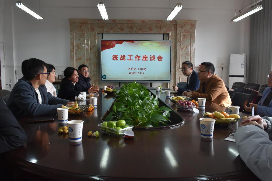 1月12日上午,化学化工学院在工科三号楼B318会议室召开2024年度统战工作座谈会,学院领导班子、各民主党派、知识分子联谊会、欧美同学会(留学人员联谊会)等代表出席会议。会议由党委书记宋刘斌主持。