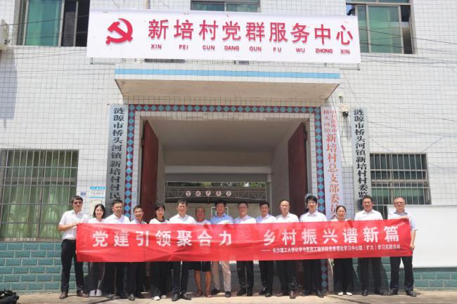 8月18日,长沙理工大学化学与医药工程学院党委理论学习中心组(扩大)赴娄底市涟源市桥头河镇新培村,召开2025年第七次集体学习会。学院党委理论学习中心组全体成员、教工党支部书记、党政办负责人,学校驻村帮扶工作队队长刘治国、队员欧阳展平,新培村党支部副书记李细周等参加学习活动。