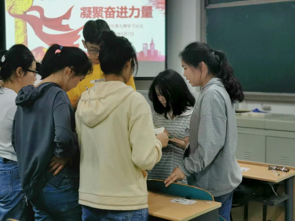 57日晚,化学学院学生党总支在工三A205举办期学习论坛,本期主题为弘扬五四精神凝聚奋进力量”。论坛由环工支部何妍主持,部分党员和积极分子代表50余人参加。