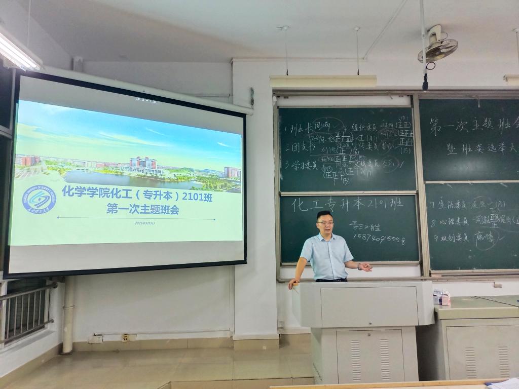 为了让新同学尽快融入新集体、新环境,熟悉老师、班级同学,增强班级凝聚力,提高新同学人身财产安全防范意识,9月5日晚上,化学学院于工三召开化工(专升本)2101班第一次主题班会,本次班会由年级辅导员王彪主持,班主任李江胜老师以及37名班级同学参加.