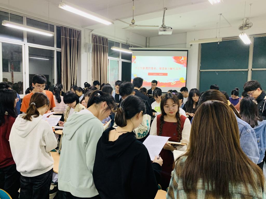 随后与会人员围绕主题展开谈论和交流。通过学习建党历史,大家对于青年担当有了深入理解应化支部王思铖谈到,“新文化运动”的兴起,让中国进入了一个新的历史起点。无数革命先烈抛头颅、热血的牺牲与奉献,救中华民族于水深火热之中,创建了一个全新的政党,崭新的社会化工支部赵泽宇讲述,马克思主义在中国的全面发展与宣扬,让中国革命的面貌焕然一新,使灾难深重的旧中国逐步变为一个独立富强的新中国。食品支部李超智提出,“一代人有一代人的使命”,我们青年人传承红色基因,延续共产党人血脉,从党史汲取精神力量,让青春之花绽放党和人民最需要的地方。