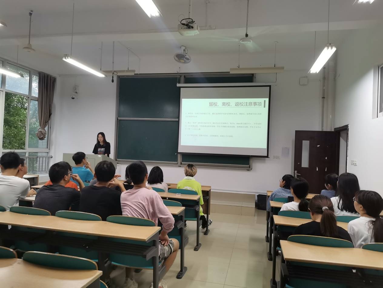 7月8日-7月12期间,化学学院2019级先后召开了班委暑期安全教育大会和各班暑假离校安全教育班会,年级辅导员王彪以及2019级各班班委以及同学参加会议