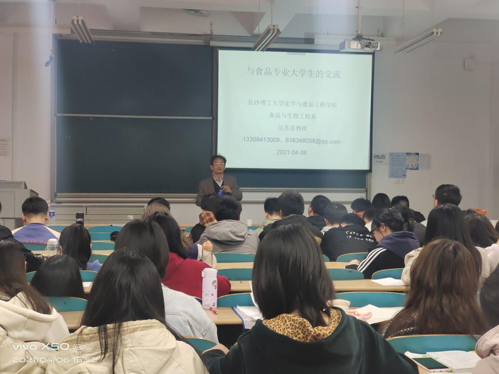 首先,许宙从培养目标,专业特色,专业师资力量展开介绍了食品科学与工程专业。以最近的315沃柑事件引出食品安全问题,并就食品安全检测专业的核心课程,课程目标进行简要概述。接下来,李向红从学科简介,学科方向,人才培养三方面介绍了雷竞技官网食品科学与工程专业的优势,并着重介绍了学科主要研究方向,分享了代表性毕业生的发展方向。下一位是吴苏喜,他以幽默风趣的语言风格,通过与同学们面对面的交流,从我们大学生为什么要学习?我们专业是干什么的?我们需要学习什么?有什么优势?等四个方面讲述了他对食品科学与工程专业的见解。
