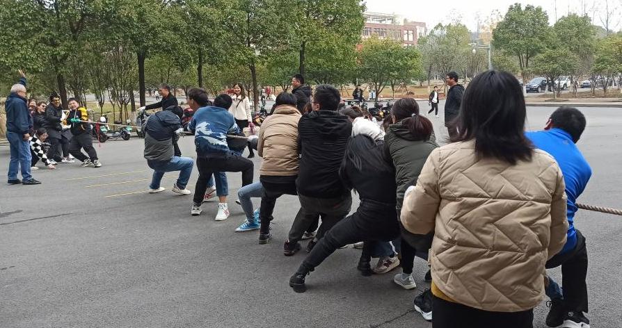 千教万教教人求真,千学万学学做真人。为了活跃学院气氛,增进研究生师生间的友谊,增强师生间的凝聚力,增强学生间的凝聚力,培养学生的团队合作能力。2021年12月15日早上十点,化学化工学院在云塘校区工三教学楼前成功举办了研究生师生拔河比赛,化学化工学院研究生导师及部分研究生参加此次师生拔河比赛。