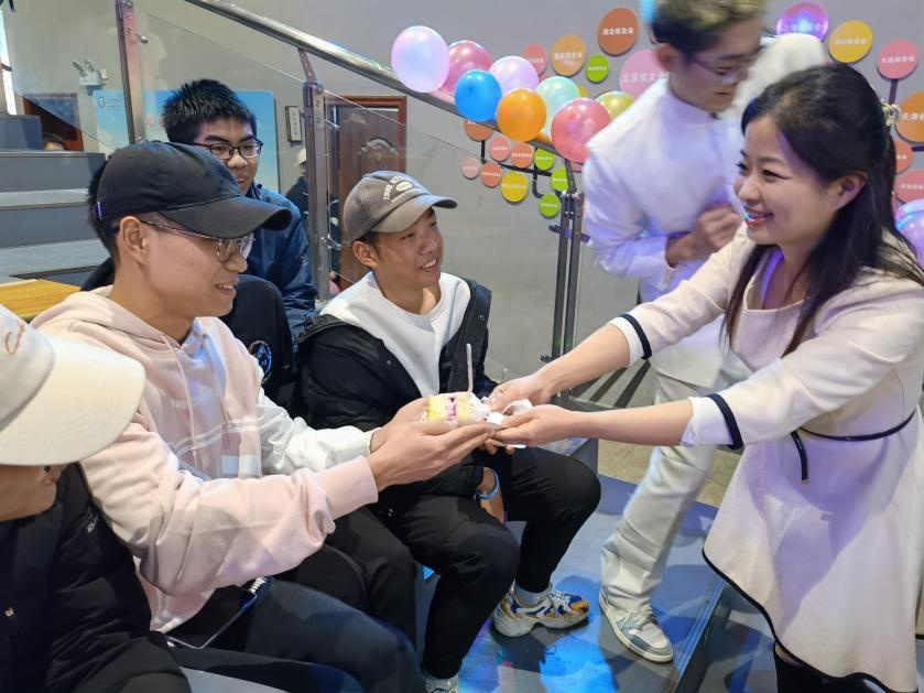 在轻柔的音乐声中,新生代表通过诗歌朗诵表达了入学百天以来的心声,并带领全体新生宣誓:将牢记校训,努力学习,成人成才!各班代表向班主任老师鲜花,向恩师表达感谢。活动中,学院精心准备了百日纪念蛋糕,写上了188位21级新生的名字。新生代表吹灭百日蜡烛,老师们齐切百日蛋糕,分发到每位同学手里。化工2106班的李晓鹏感叹:“这次百日仪式更坚定了我学好化学专业、建设化工强国的信心。要走更远的路,去看更远的风景。在大学里不断打磨自己,不负韶华!